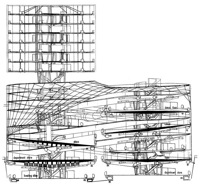 Entertainments Palace, Leister Square (The Sin Centre), EW Section, Michael Webb, © Archigram 1961-63