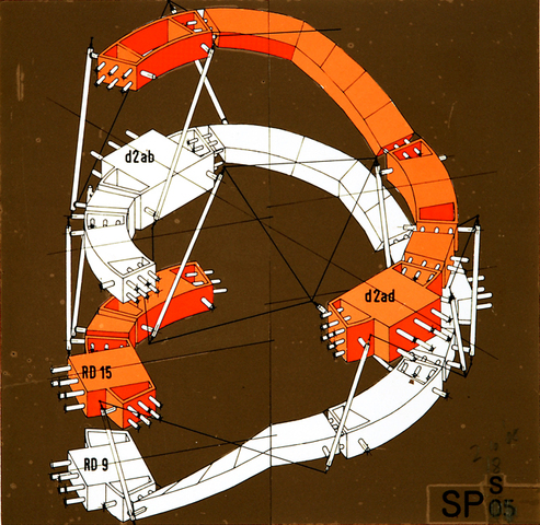 of 90 Deg. And Elevation of 270 Deg. of Circular Car Ramp, Entertainments Palace, aka Sin Centre by Michael Webb, aka a member of Archigram