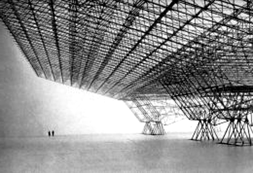 Yes you don’t hear too much about poor old Konrad Wachsmann anymore. Interesting guy: he started off in Europe and went to US and did a project for the US Air Force designing giant hanger to house and protect B52 bombers. The structure of theses hangers was huge: a giant space frame composed of aluminum tubes and ingenious designed joints. It was more like jewelry production than construction, so fine and delicate were the joints. Of course, a labourer, an employee of a building company or a steel fabricators, their tool of choice is a sledgehammer. When they’d hit a joint it shattered, so it was never taken seriously and it remained a beautiful model. Space frames all told are a bit of a lie. No matter what structure you use it helps that it’s thicker in the middle than the ends due to the transference of loads. Space frame doesn’t let you do that because they’re of uniform depth throughout.