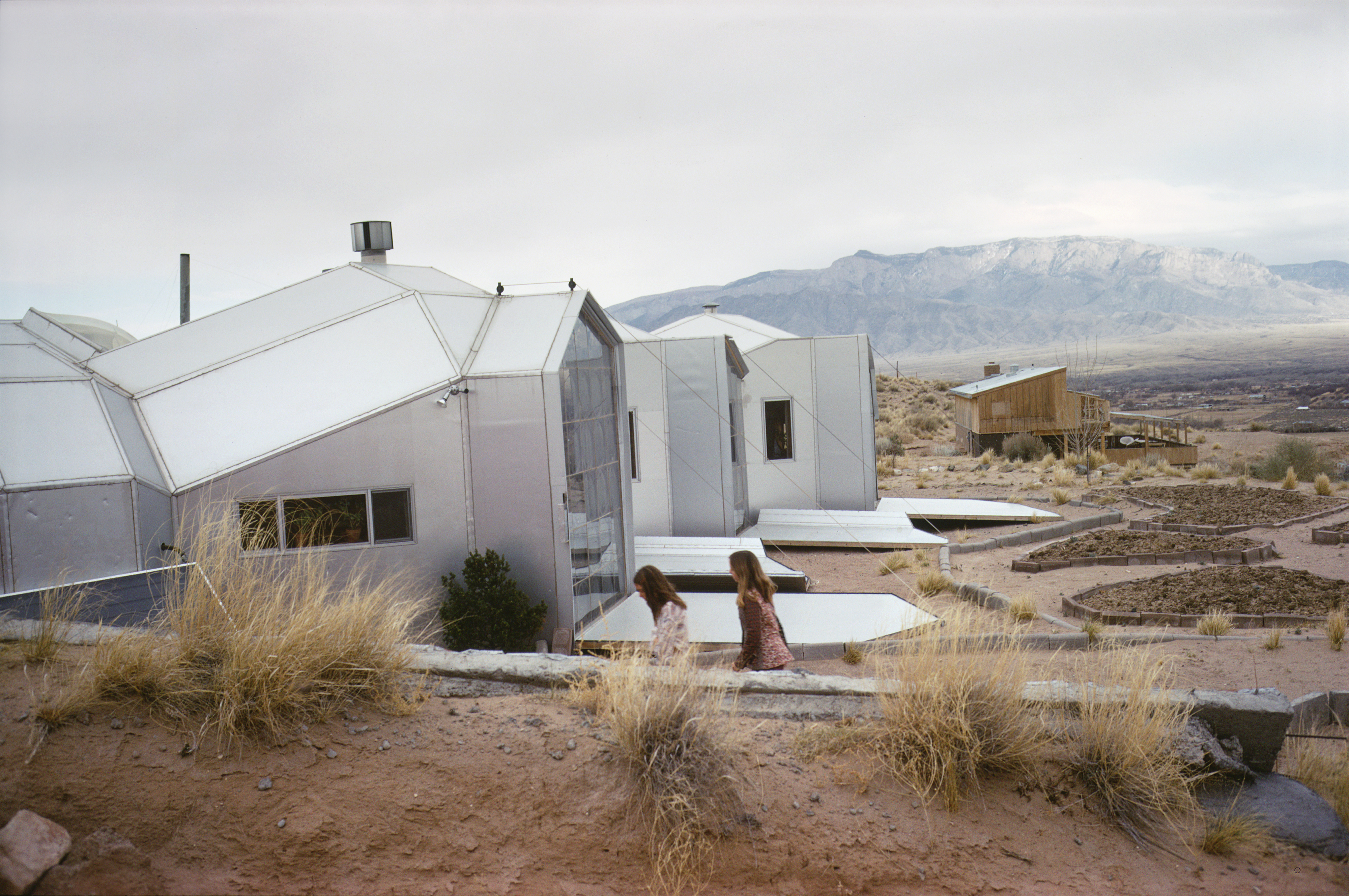 In Sorry Out of Gas we see in architectural terms the impact of this event on planning, particularly of homes. Individuals like Steve Baer – an inventor of passive solar devices and Mike Reynolds an architect and builder of houses made of old car tires packed with dirt- creating domestic structures with features which would permit a direct relationship with nature. As much as they represent considered responses to fears over imagined shortages of traditional building materials, they also sit in remote landscapes or are hidden in the earth. There is a physical remove from social interaction. Baer and Reynolds in particular have considered the unit they are building for to be the family.