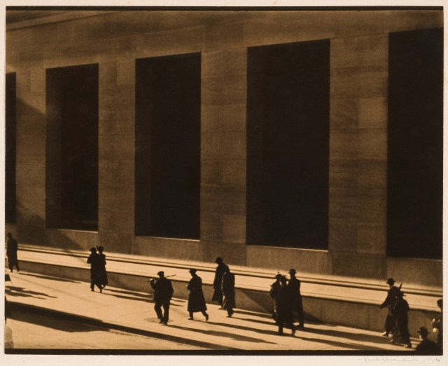 What makes Strand’s picture so entrancing is exactly that: the relationship it establishes between the workers and the blank chasm of JP Morgan’s windows. Black figures. Black windows. The power of Strand’s image is the sense that the structure of oppression is generated by the very men and women that passed by it. The maw is formed from their own inky substance, a feature heightened by Strand’s use of a Japanese paper that soaks up the image. What gives it even greater power is that it offers those individuals the chance to see clearly their own relationship and – should they wish – do something about it.