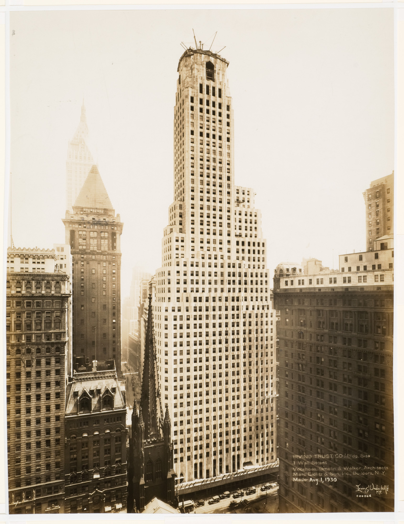 Irving Underhill, Irving Trust Company Building Site, 1 Wall Street, New York City, 1 August 1930. Gelatin silver print, 34 x 25.8 cm. PH1987:0183. Canadian Centre for Architecture, Montréal
